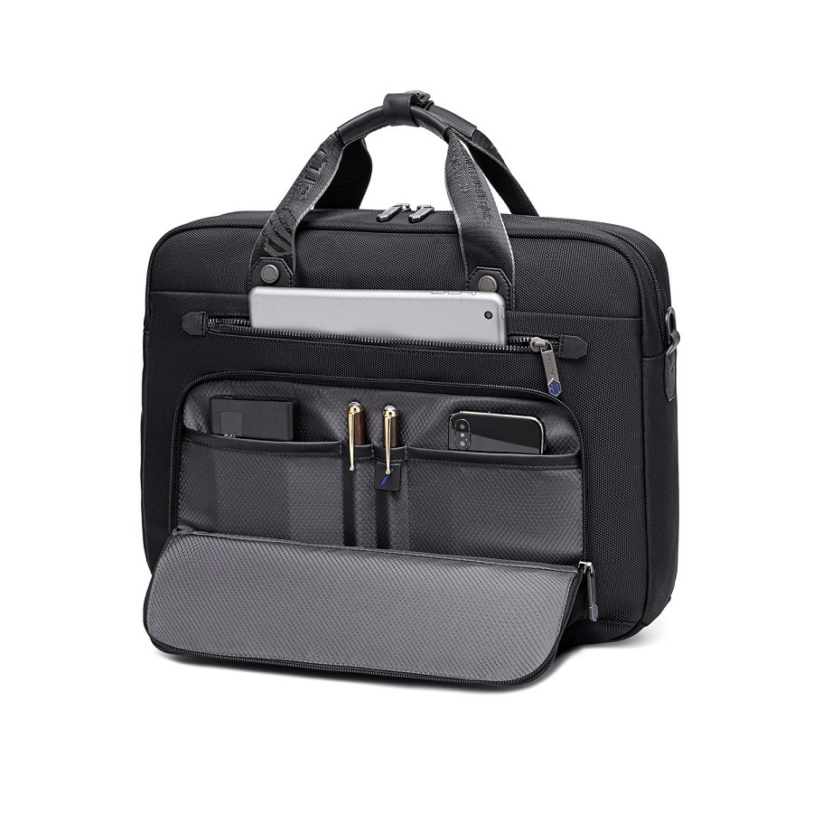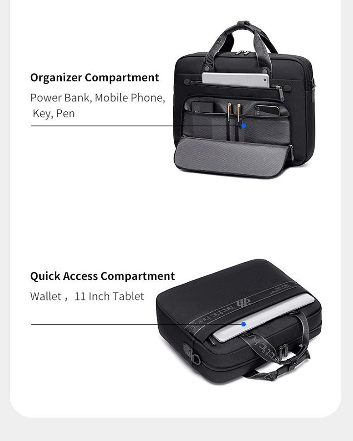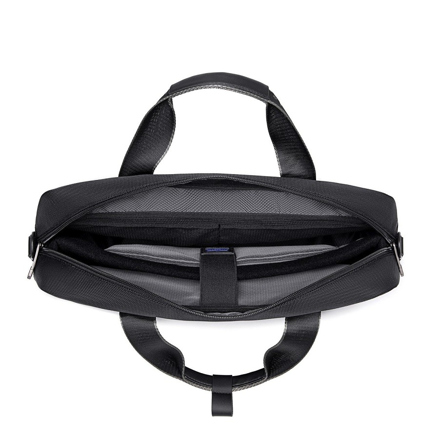 Elegáns, üzleti stílusú fekete Arctic Hunter GW00017 férfi laptoptáska több rekesszel és nagy kapacitással. Külön laptop- és tabletzseb ütésálló, vízlepergető védelemmel. Strapabíró poliészter és mikroszálas bőr borítás, erős fém cipzár. Kényelmesen hordható kézitáskaként vagy válltáskaként, bőröndre rögzíthető. Ideális mindennapi használatra és utazáshoz.