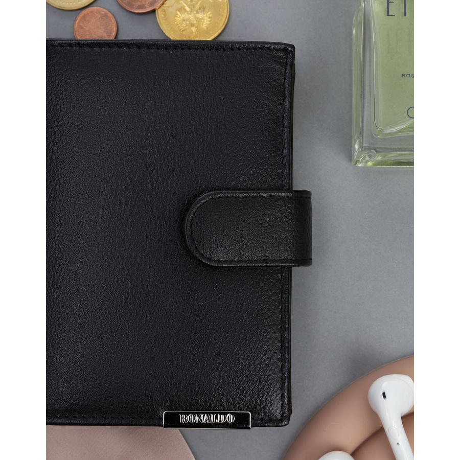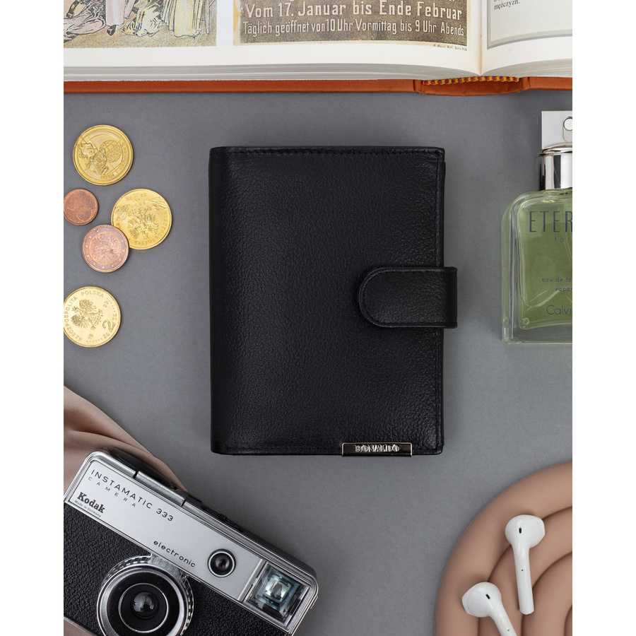 Nagy férfi bőr pénztárca fekete színben, pattintós zárással – 4U Cavaldi