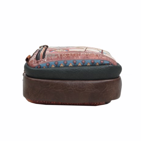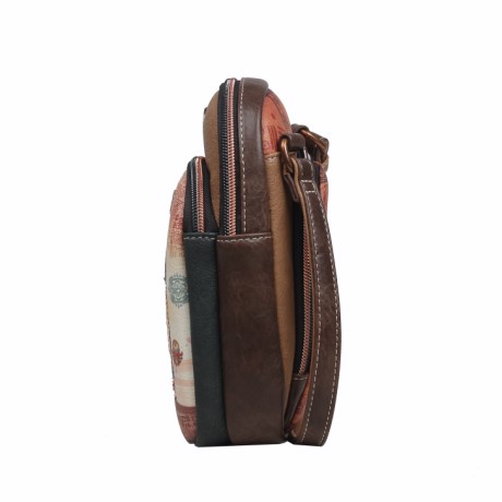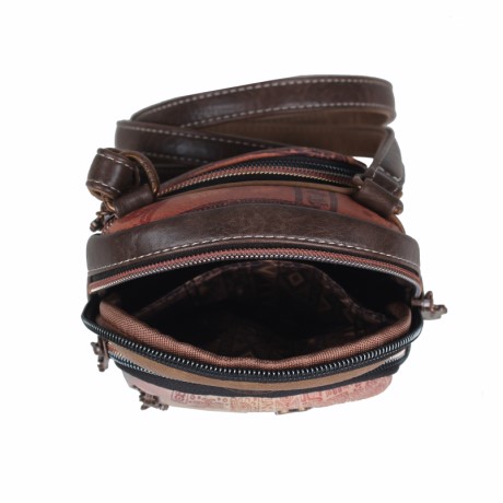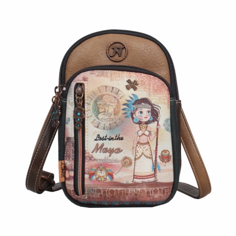 A Janet Maya Journey női oldaltáska bájos, maja ihletésű grafikájával és harmonikusan összehangolt barna, bézs és pasztell árnyalataival különleges megjelenést nyújt.