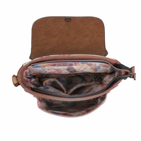 A hajtókával záródó fő rekesz tágas, könnyen pakolható, belsejében cipzáras és nyitott zsebek segítik a rendszerezést. A kellemes tapintású, mintázott bélés igényes belső megjelenést kínál. A táska elején elhelyezkedő nagy zseb gyors hozzáférést biztosít a gyakran használt tárgyakhoz.