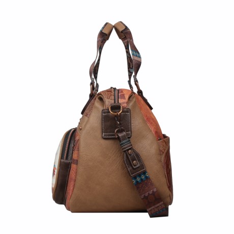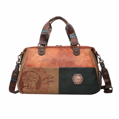 A Janet Maya Journey női utazótáska különleges, maja kultúra ihlette grafikájával és földszínekkel harmonizáló részleteivel egyedi, karakteres megjelenést kínál.