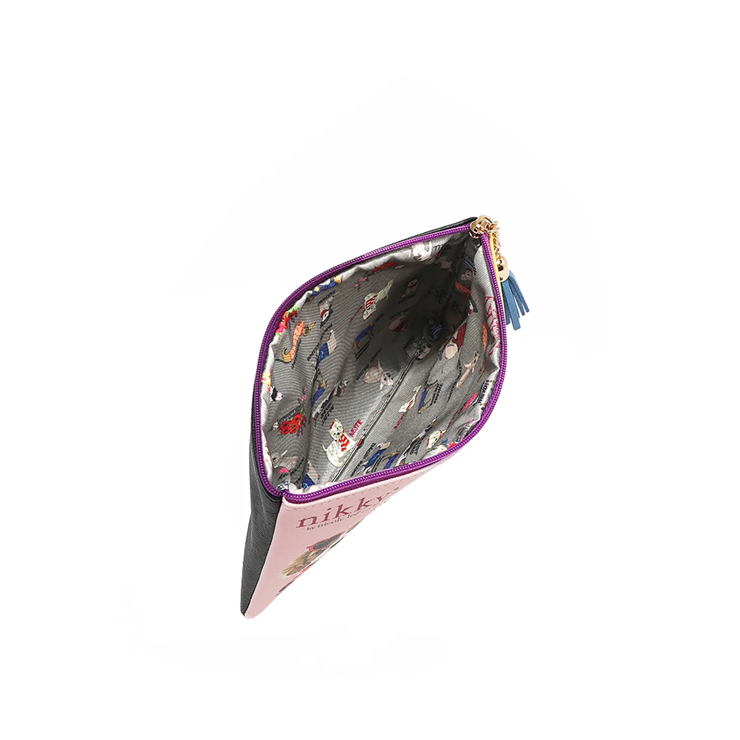 - Tasak: Ökobőrből készült. Fő cipzáras záródás. Arany hardver cipzár bojttal. Nikky mintás elöl és hátul. Nikky logó adattábla.