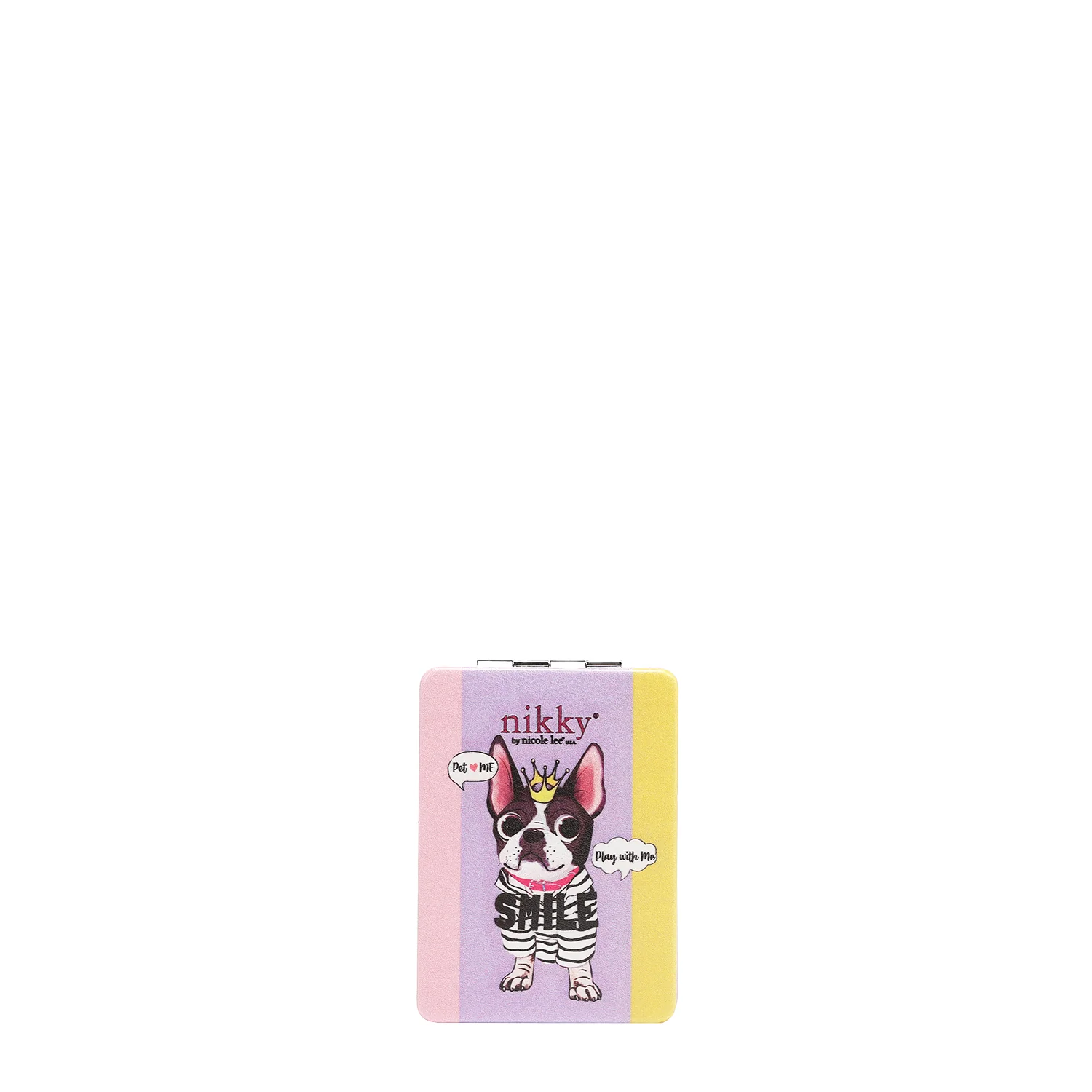 - Téglalap alakú tükör: Nikky nyomtatás eco-bőr elöl és hátul. Rozsdamentes acél. Mágneses zárás.