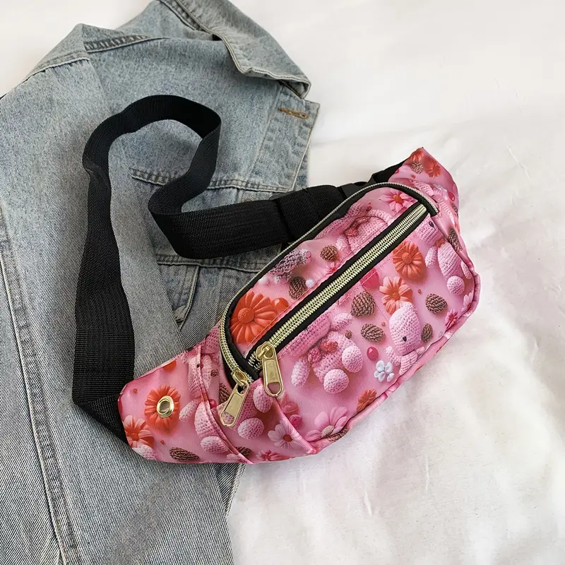 Női Övtáska- Mackó Mintás- Rózsaszín-