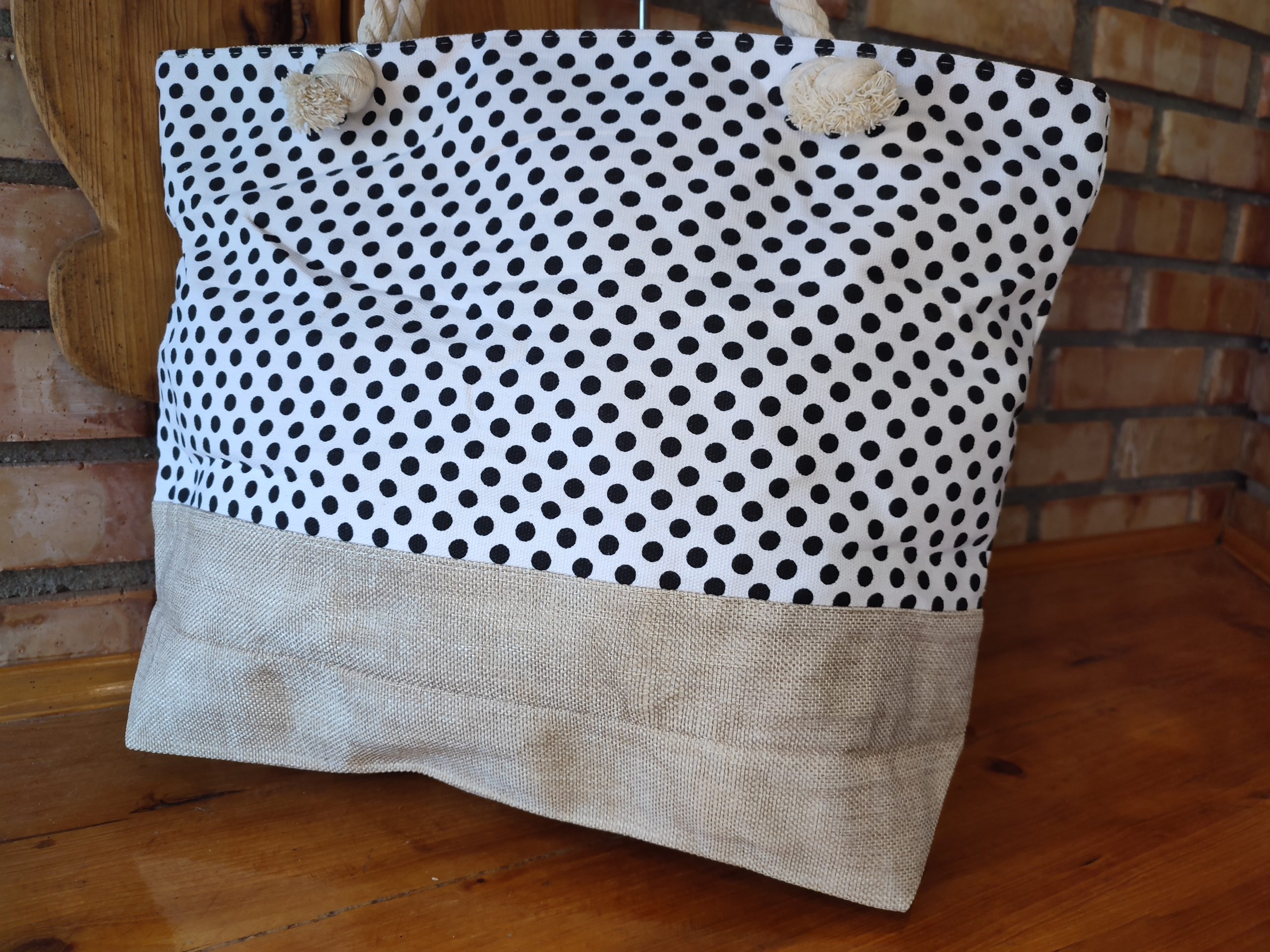 NŐI STRANDTÁSKA HORGONY MINTÁS – FEHÉR- FEKETE PÖTTYÖS –