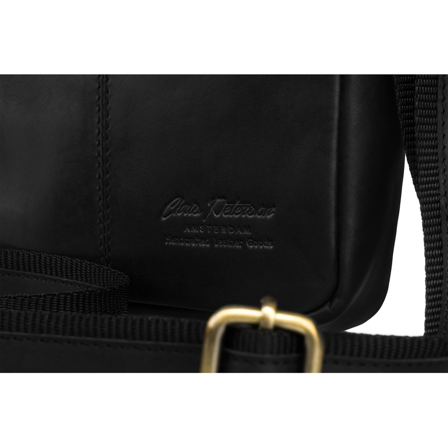 Klasszikus férfi bőr válltáska fekete színben, zsebekkel és tokkal – Peterson