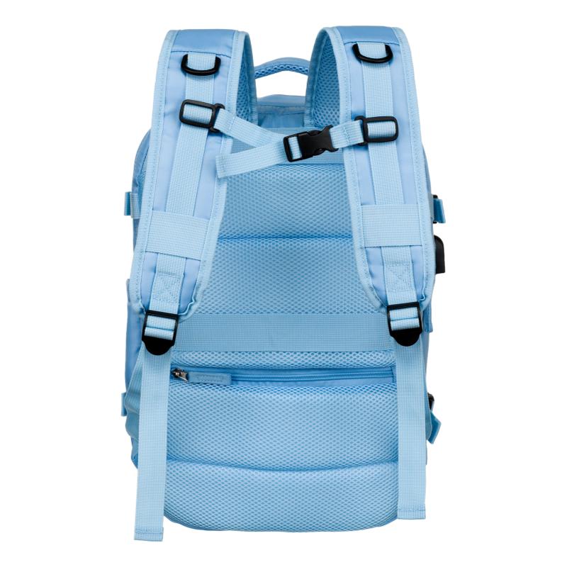 A vállpántok belső oldala és a hátizsák hátfala hálós szövettel van bélelve a megfelelő szellőzés érdekében – a megfelelő légáramlás hűti és eltávolítja a hátulról az izzadságot. A csípőöv használata az egyenletes súlyelosztásnak köszönhetően tehermentesíti a karokat és a vállakat. A hátizsák további oldalpántokkal rendelkezik, erős ABS anyagból készült FASTEX rögzítővel . Kompressziós funkcióval rendelkeznek (a hátizsák csökkentése).