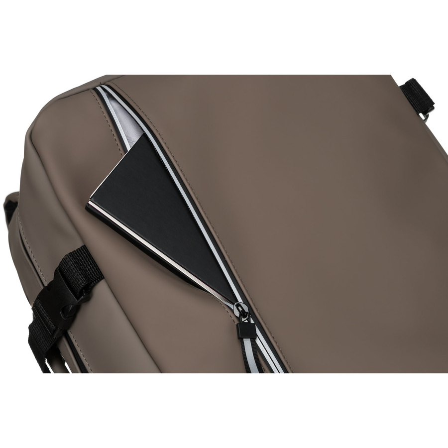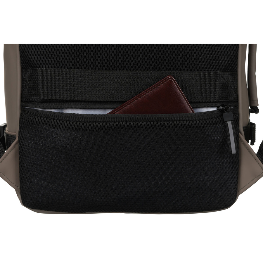 - A hátizsák diszkrét, rejtett zsebbel van felszerelve a hátsó falon, amely közvetlenül a felhasználó háta mellett található. Ideális helypénztárcának, dokumentumoknak, telefonnak vagy kulcsoknak, mivel maximális védelmet nyújt a zsebtolvajok ellen.