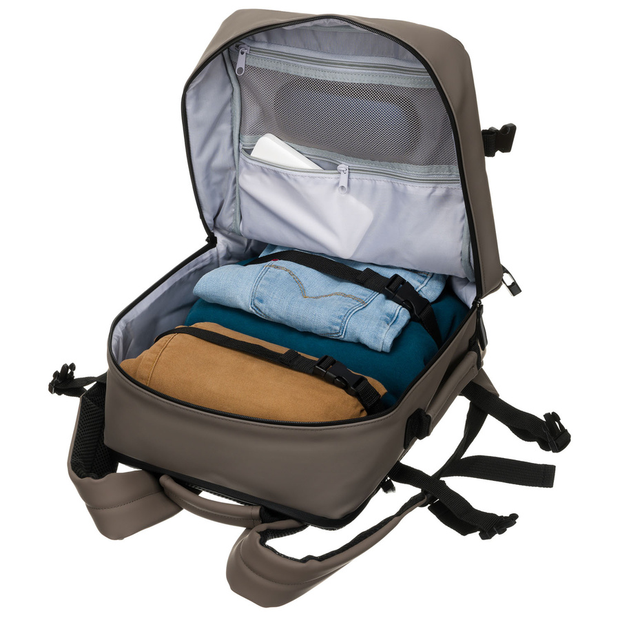 - A 2 tágas rekesz megkönnyíti a dolgok rendszerezését, a 4 további zseb pedig lehetővé teszi a kis tárgyak kényelmes elhelyezését. Könnyen elférnek benne ruhák, laptopok, kozmetikumok vagy dokumentumok.