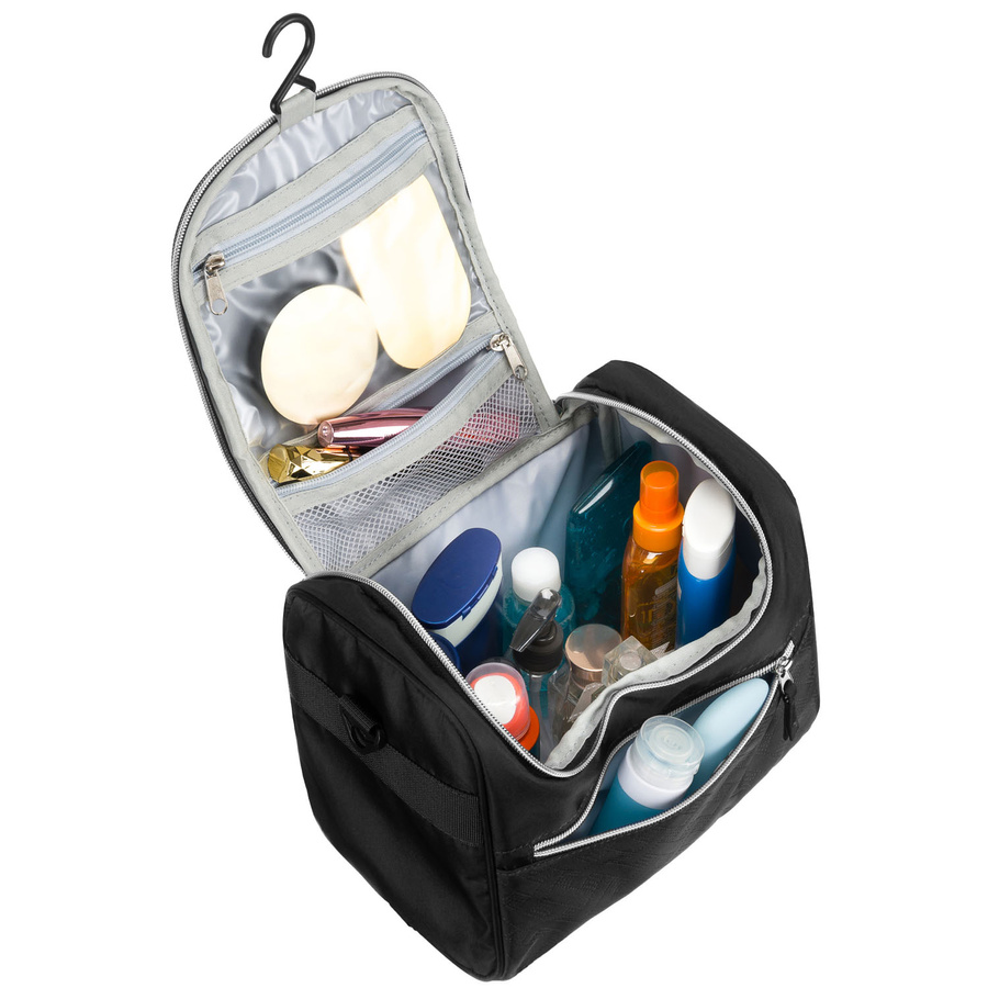 A piperecikk-táskát kényelmes kampóval lehet felszerelni, amivel a fürdőszobában, az ajtón vagy a szekrényben is fel lehet akasztani – tökéletes megoldás, ha nincs elég hely a pulton. A levehető vállpánt, amely állítható hosszúságú (70-125 cm) lehetővé teszi, hogy kényelmesen hordjon, mint egy táskát, a masszív kéztartó pedig gyorsan megragadja a piperecikkes táskát és útnak indulhat. Ideális választás nemcsak utazásokhoz, hanem otthoni használatra is.