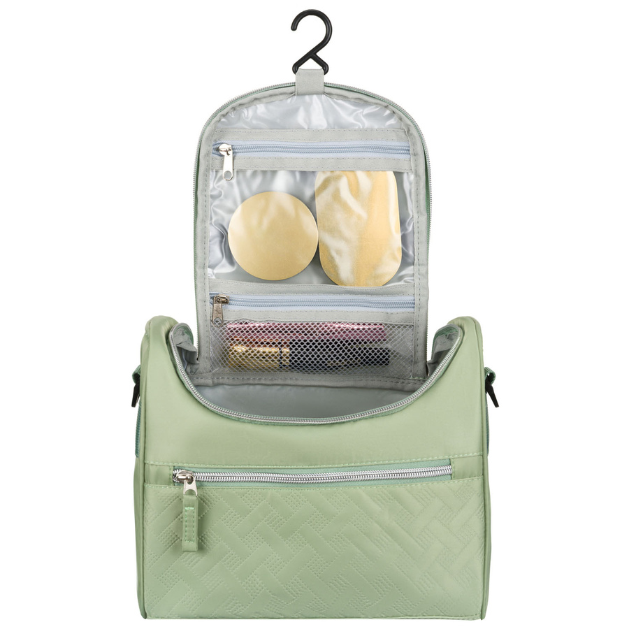 A piperecikk-táskát kényelmes kampóval lehet felszerelni, amivel a fürdőszobában, az ajtón vagy a szekrényben is fel lehet akasztani – tökéletes megoldás, ha nincs elég hely a pulton. A levehető vállpánt, amely állítható hosszúságú (70-125 cm) lehetővé teszi, hogy kényelmesen hordjon, mint egy táskát, a masszív kéztartó pedig gyorsan megragadja a piperecikkes táskát és útnak indulhat. Ideális választás nemcsak utazásokhoz, hanem otthoni használatra is.