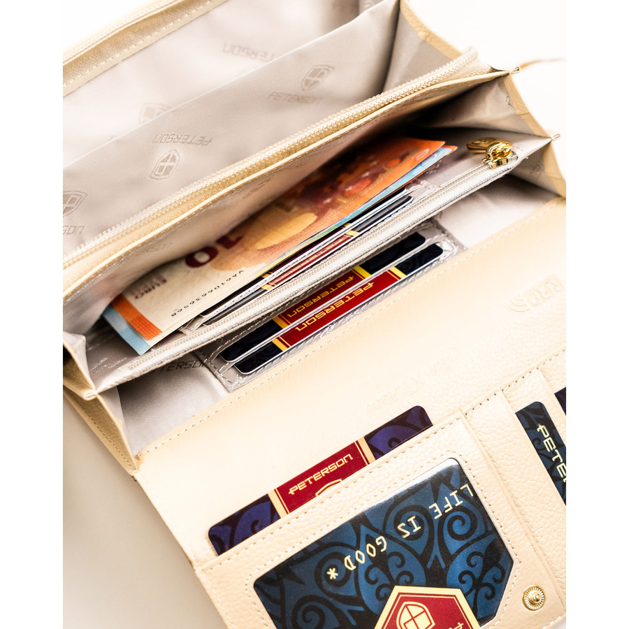 Nagy arany női pénztárca, természetes bőrből, pattintható zárással – Peterson