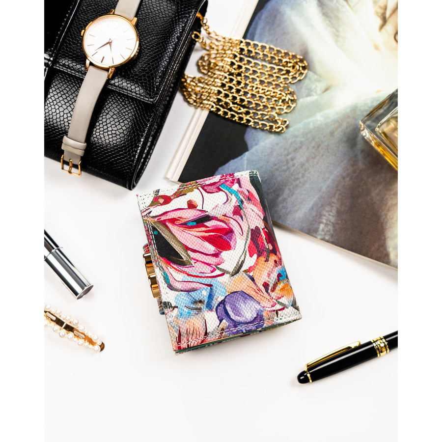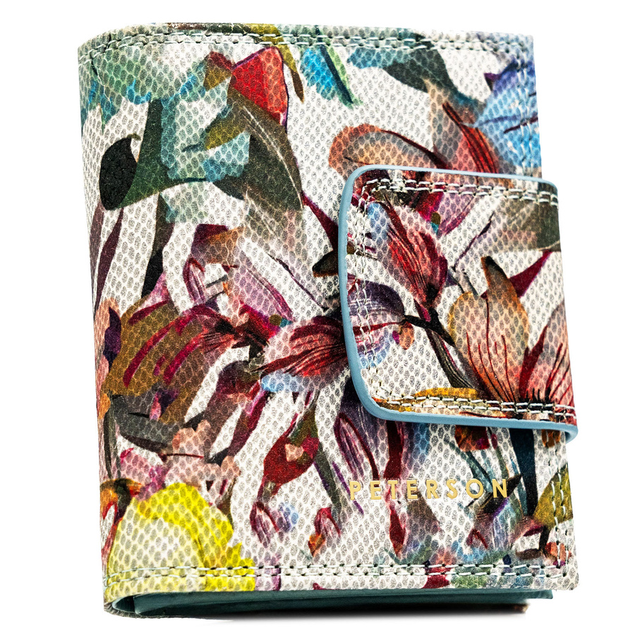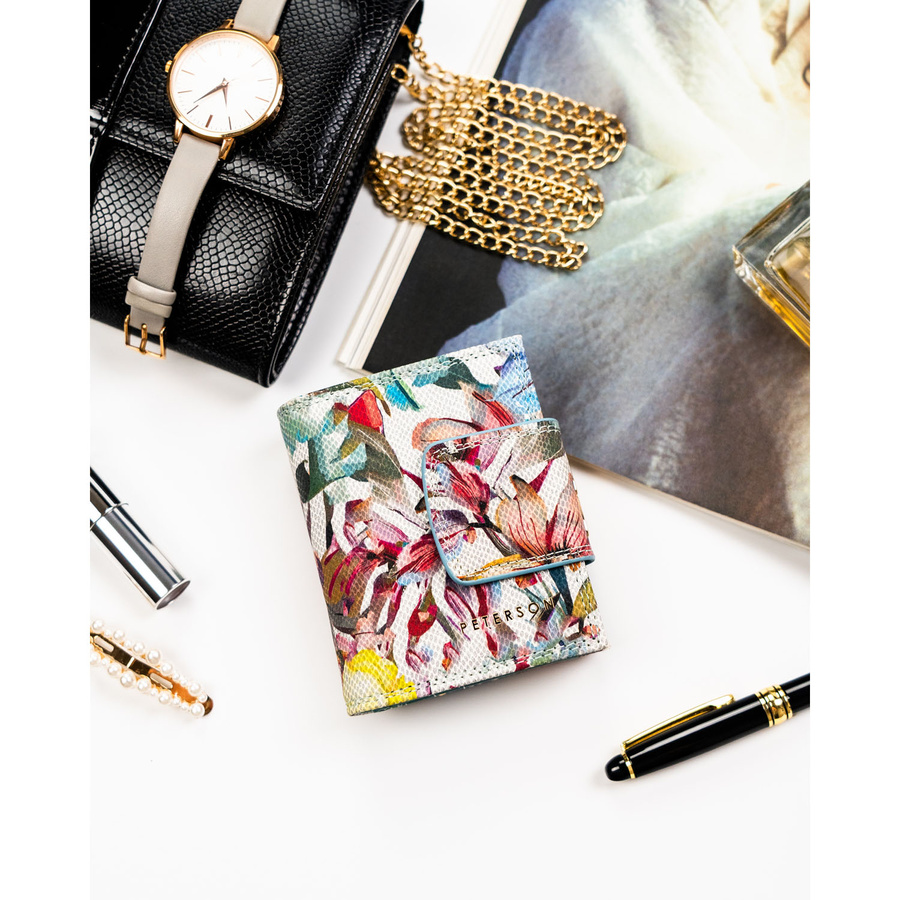 Kis, kényelmes női pénztárca természetes bőrből virágmintával – Peterson