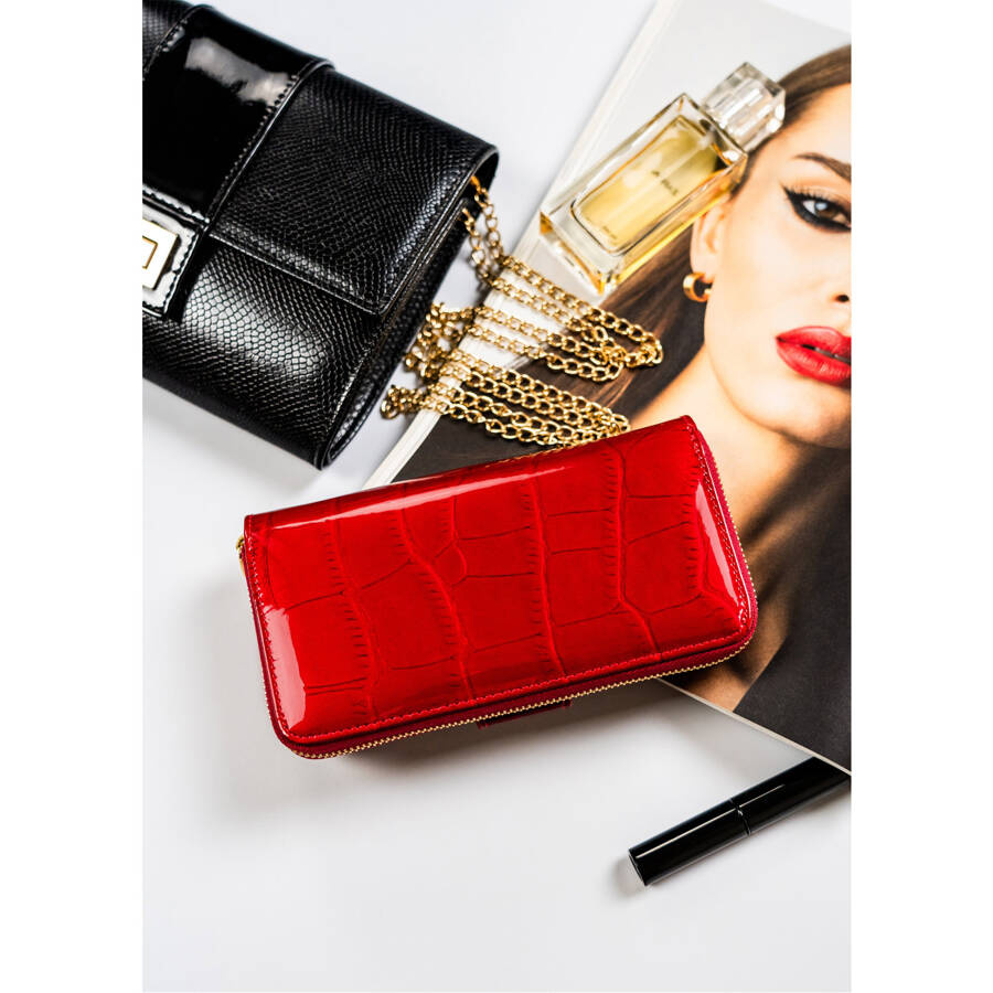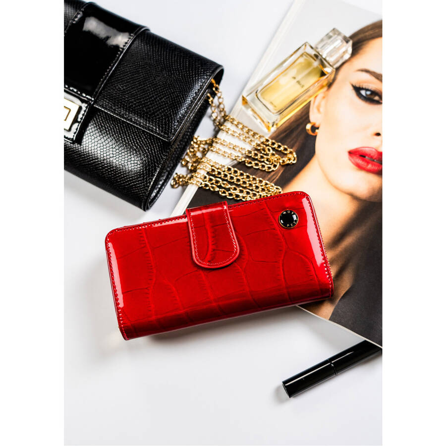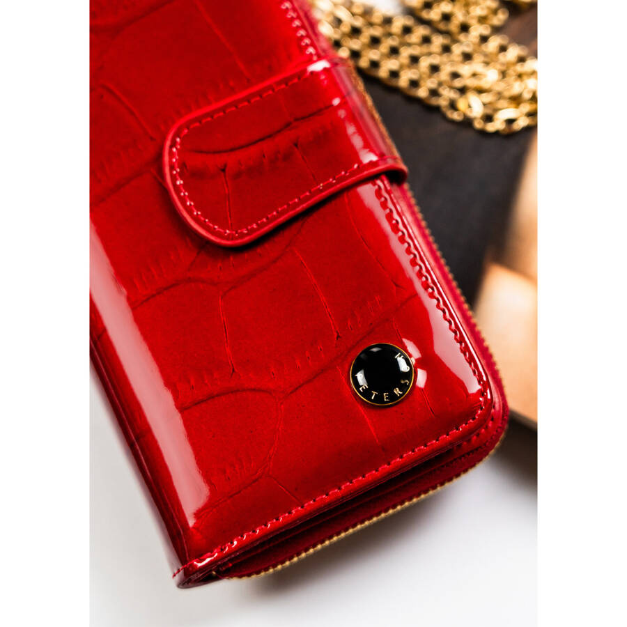 Elegancia és kifejező: Egyedi piros Peterson pénztárca természetes lakkbőrből;