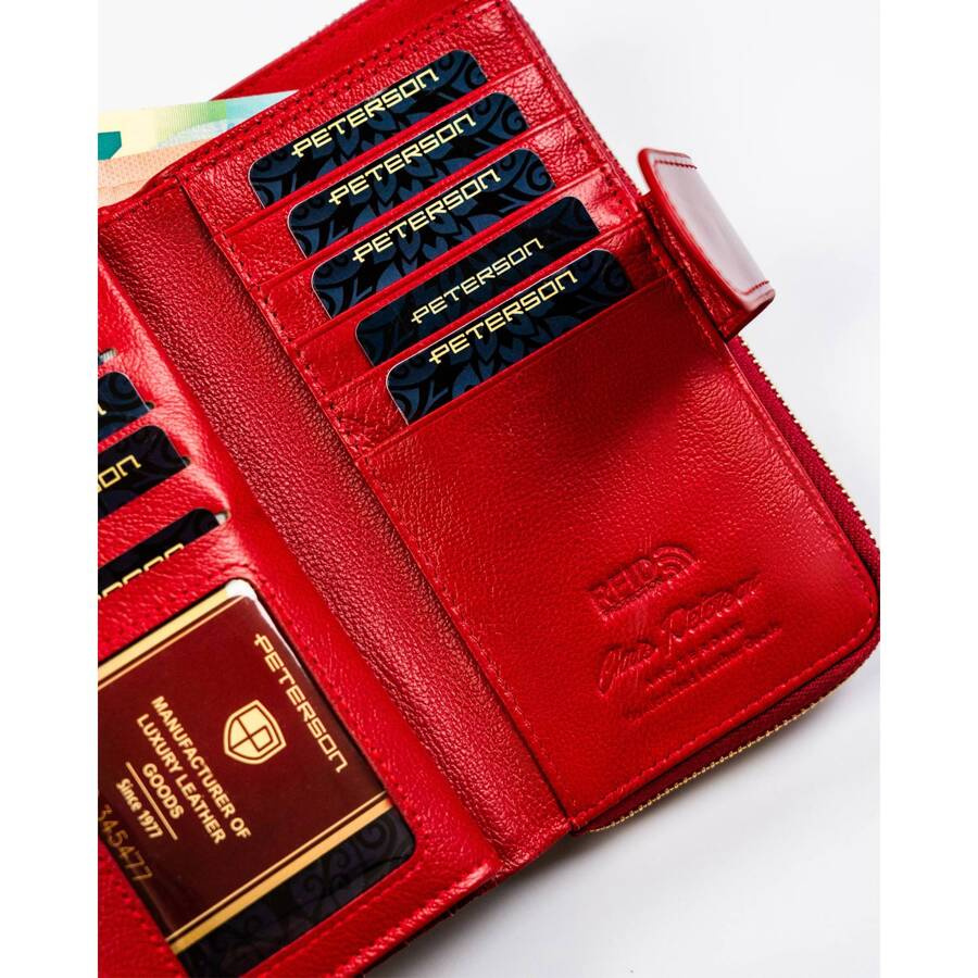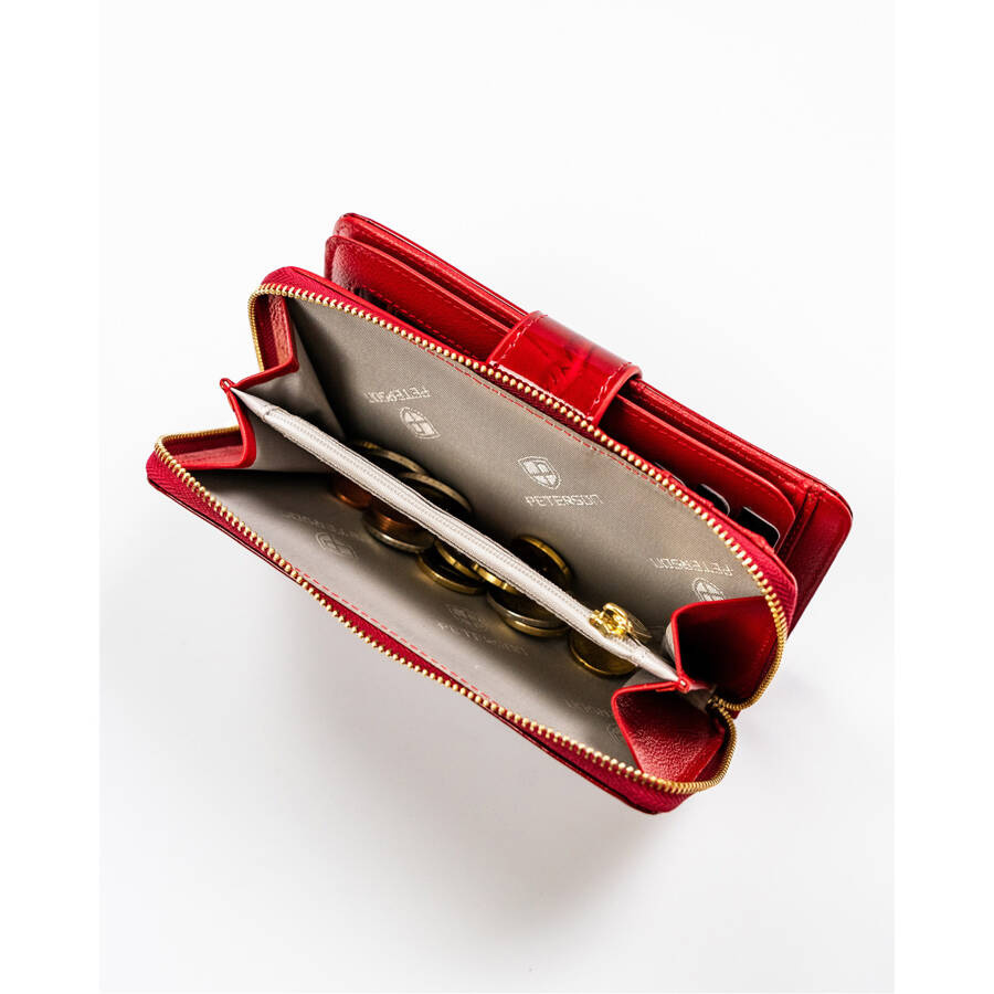 Női bőr pénztárca függőleges helyzetben, patenttal és cipzárral zárva – Peterson