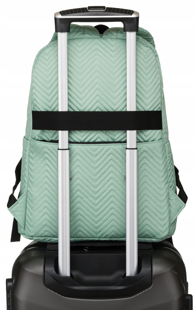 A hátizsák hátán praktikus pánttal van felszerelve, amely lehetővé teszi, hogy szilárdan rögzítse a bőrönd fogantyújához. Ez tökéletes megoldás azoknak a gyakori utazóknak, akik a kényelmet és a rendszerességet értékelik a csomagolás során.