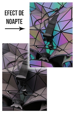 Egyedi kialakítás A holografikus hátizsák erős fényben megváltoztatja a színét Érdekes geometriai minták Minőségi PU bőr Cipzárral zárható Állítható hosszúságú hordozószíj Tetszetős hátizsák 2 belső zseb 1 további belső cipzáras zseb A női hátizsák elég nagy ahhoz, hogy minden elférjen benne, amire szüksége van – pénztárca, tablet, telefon, jegyzettömb, notesz, kulcsok, tollak, kozmetikumok stb. Kiválóan alkalmas éjszaka, ha megvilágítja egy autó Biztonságot nyújt akkor is, ha az út szélén sétálsz Iskolába, munkába vagy mindennapi viselésre Erős csatos rögzítés