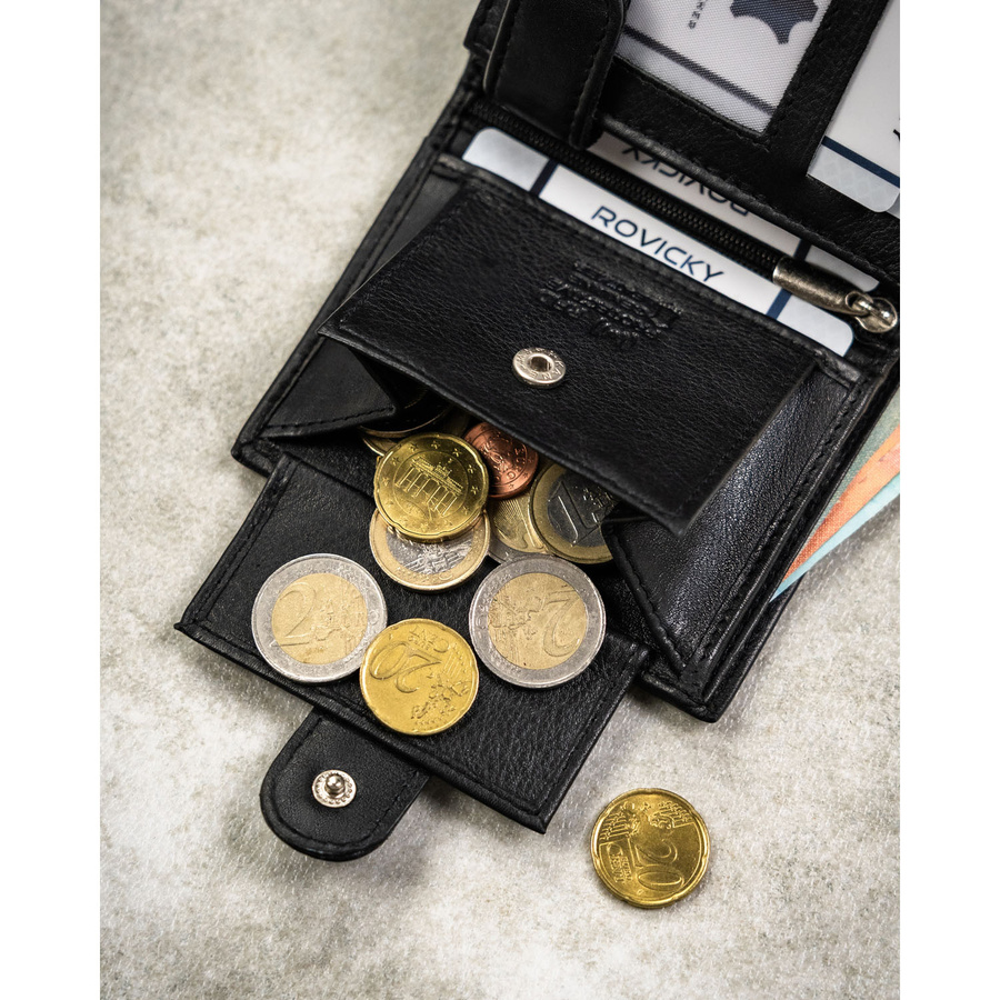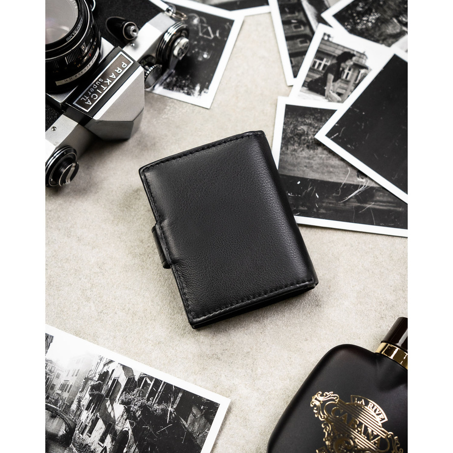 Férfi valódi bőr függőleges pénztárca fekete pattintott zárással – Rovicky