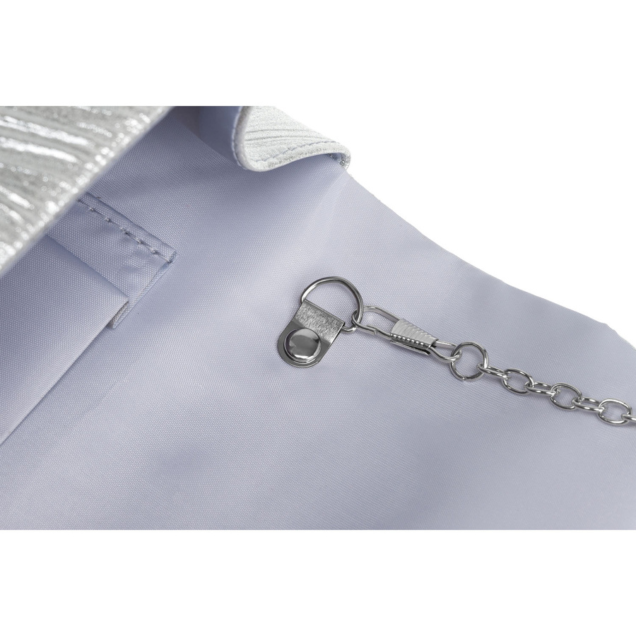- Ezüst szerelvények és finom lánc, amely osztályt ad;