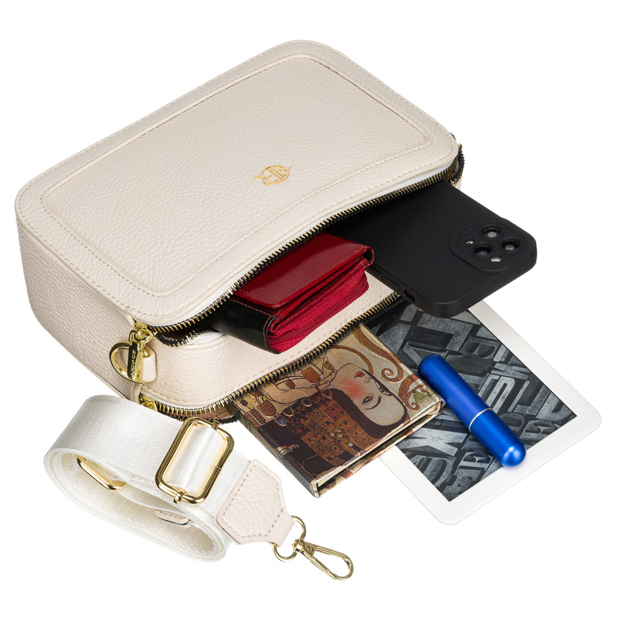 A táska szilárd hevederrel van ellátva, amely lehetővé teszi a hossz beállítását. A nagy beállítási tartománynak köszönhetően a tasak magasságtól és alaktól függetlenül tökéletesen illeszkedik ruháihoz.