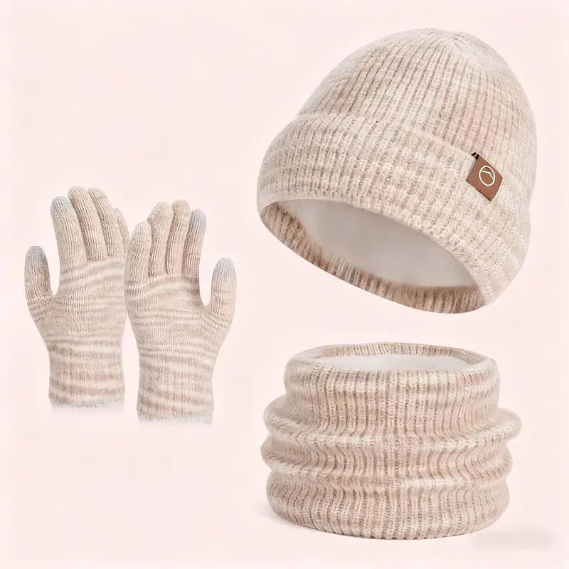 Sapka + Sál + Kesztyű Szett -Bézs-VR8291991-