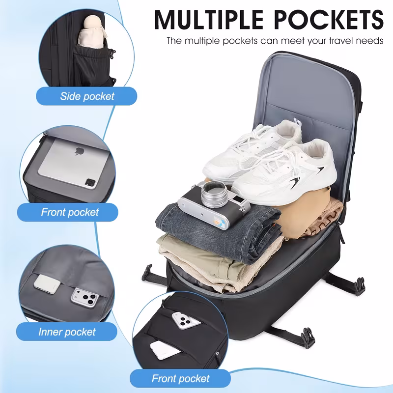 Bővíthető utazási hátizsák ruházat, laptop és személyes tárgyak számára. Modern kialakítású modell. Rendkívüli pontossággal, kiváló minőségű anyagokból készült. Tökéletes mindennapi használatra, munkára és utazásra.