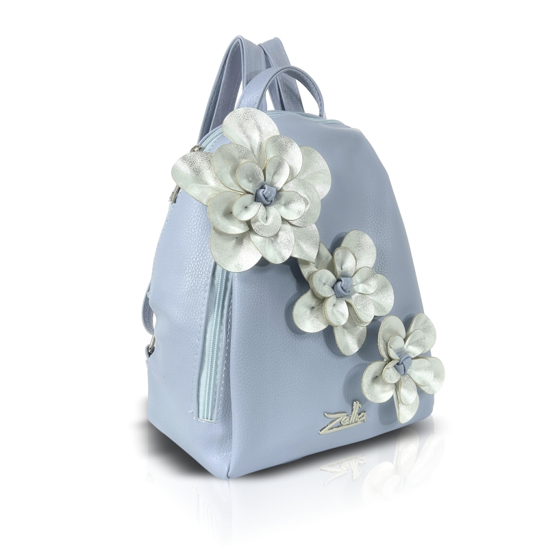 Zellia Női Hátizsák 24147F Baba Kék-Ezüst – Monaco – Virág Dísszel –