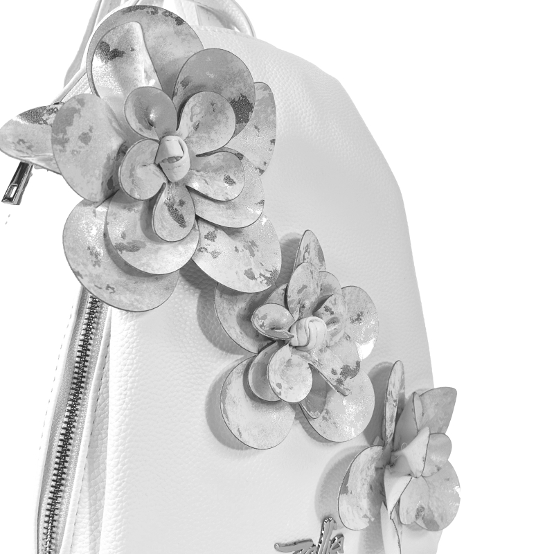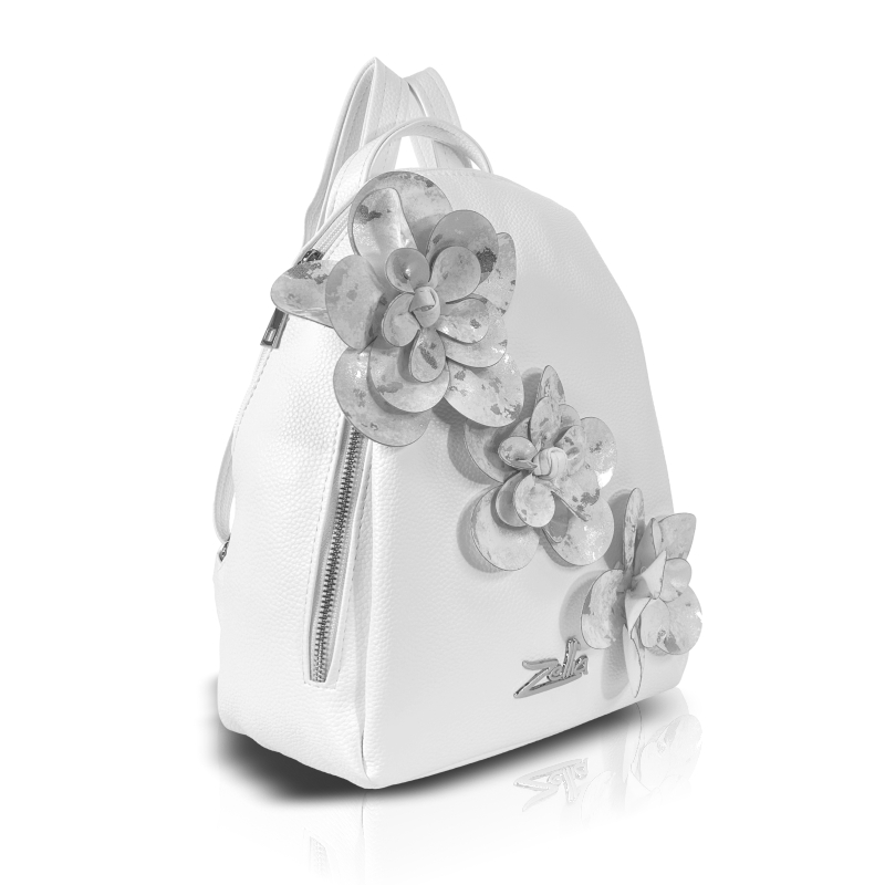 Zellia Női Hátizsák 24147F Fehér-Ezüst – D2 – Virág Dísszel –