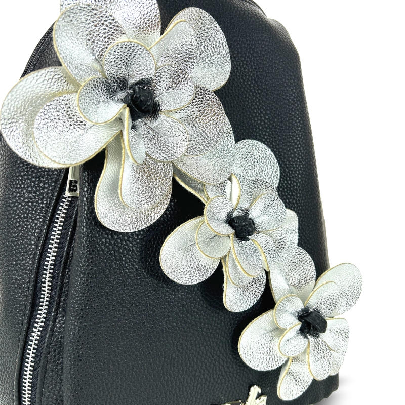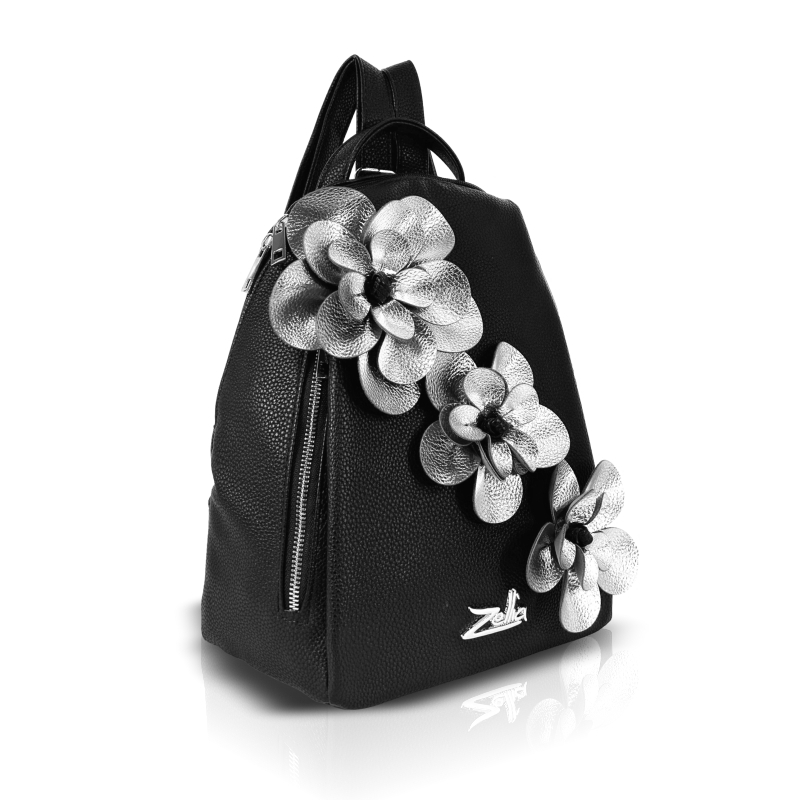 Zellia Női Hátizsák 24147F Fekete-Ezüst – Bari – Virág Dísszel –
