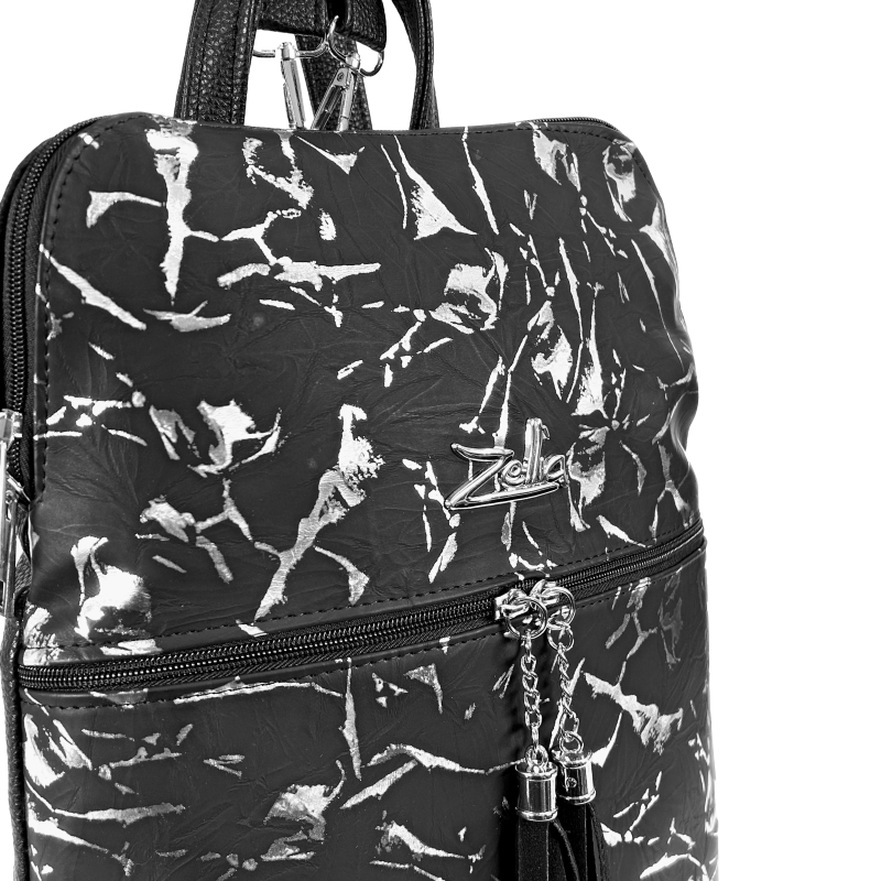 Zellia Női Hátizsák 24149 Fekete-Ezüst – Leaf –
