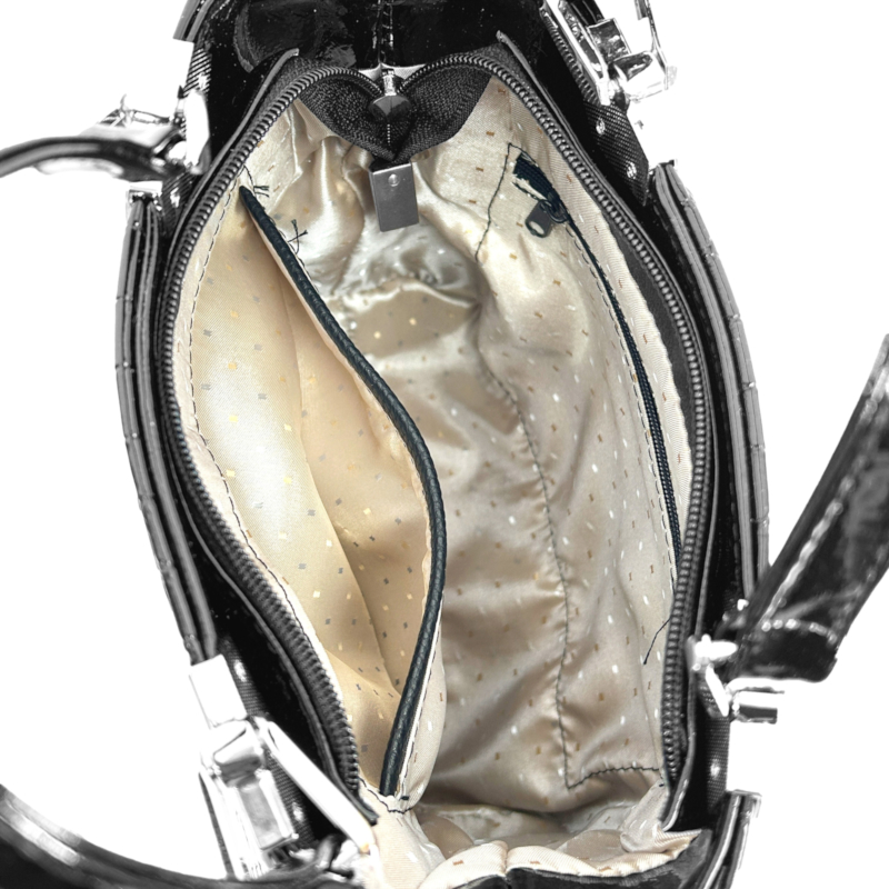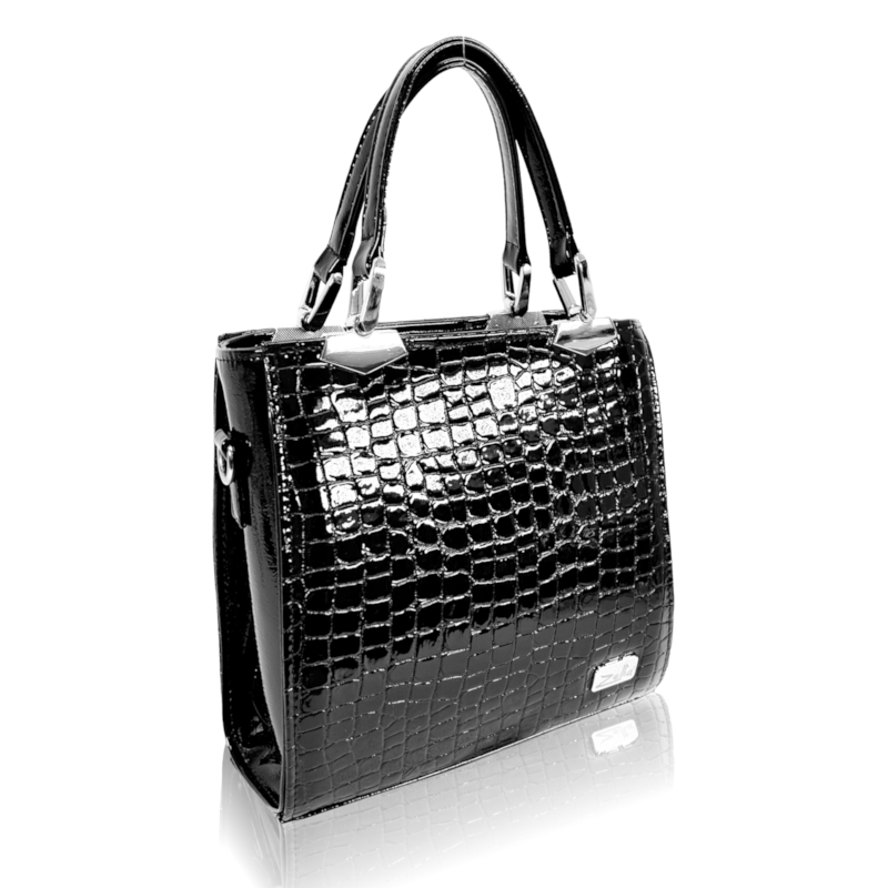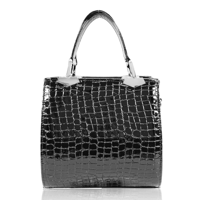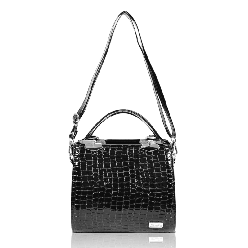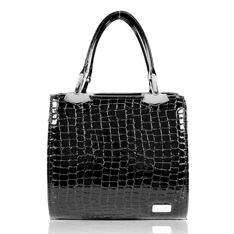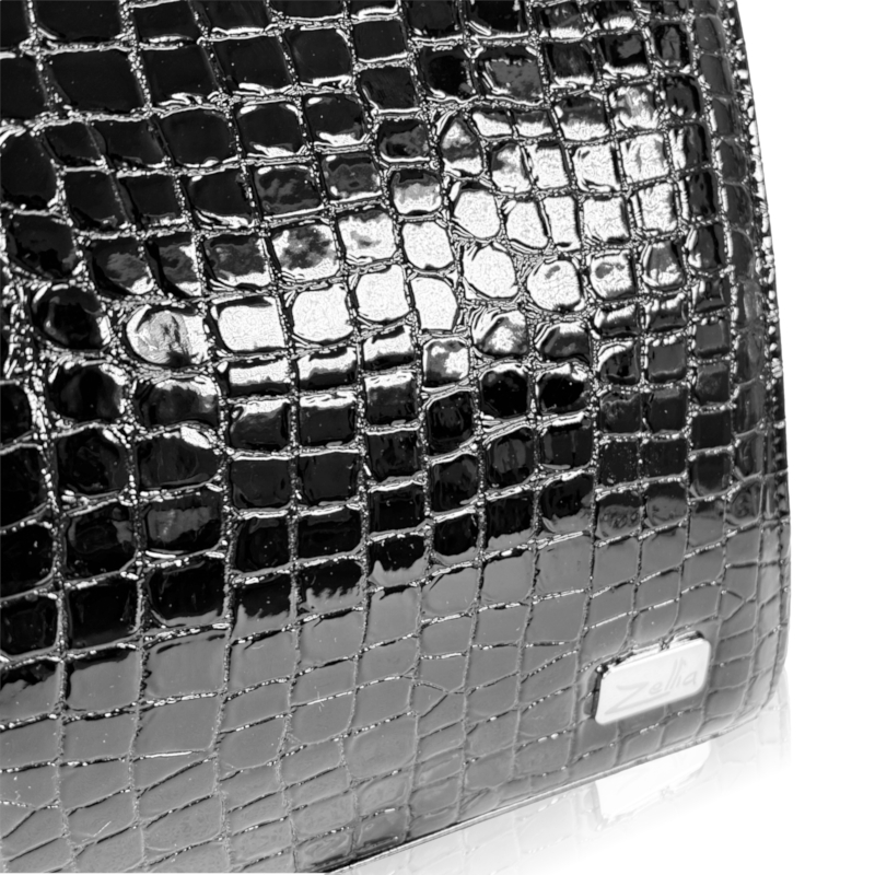Zellia Női Kézitáska Zvn24001 Fekete Lakk – Krokkó – Kis Méretű –