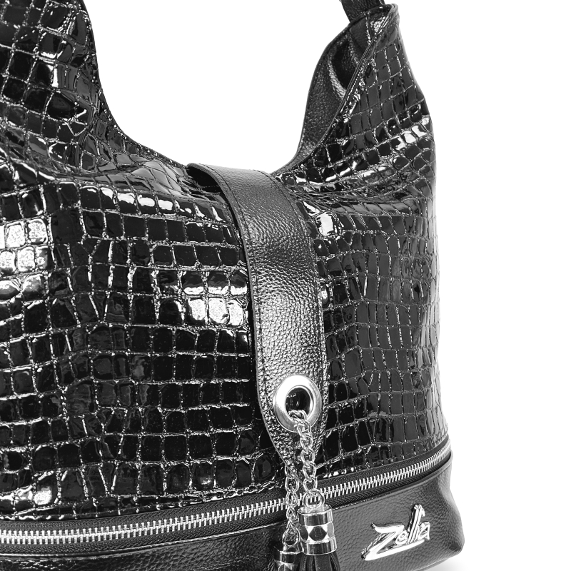 Zellia Női Válltáska 24021 Fekete Lakk – Krokkó –