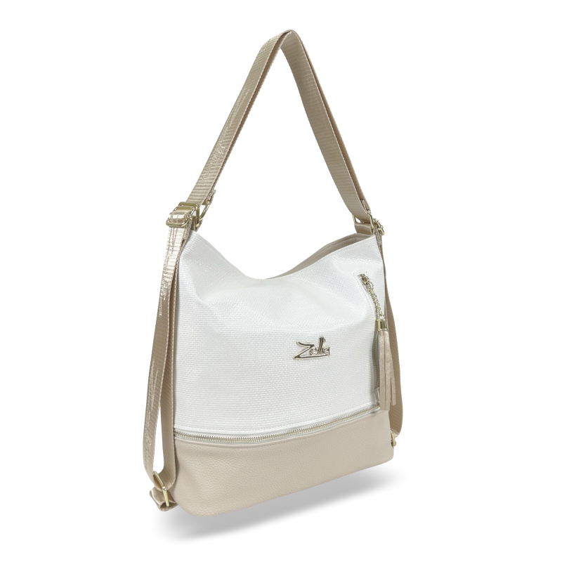Zellia Női Válltáska/Hátizsáká Alakítható 24083 Beige – Holo Fehér –