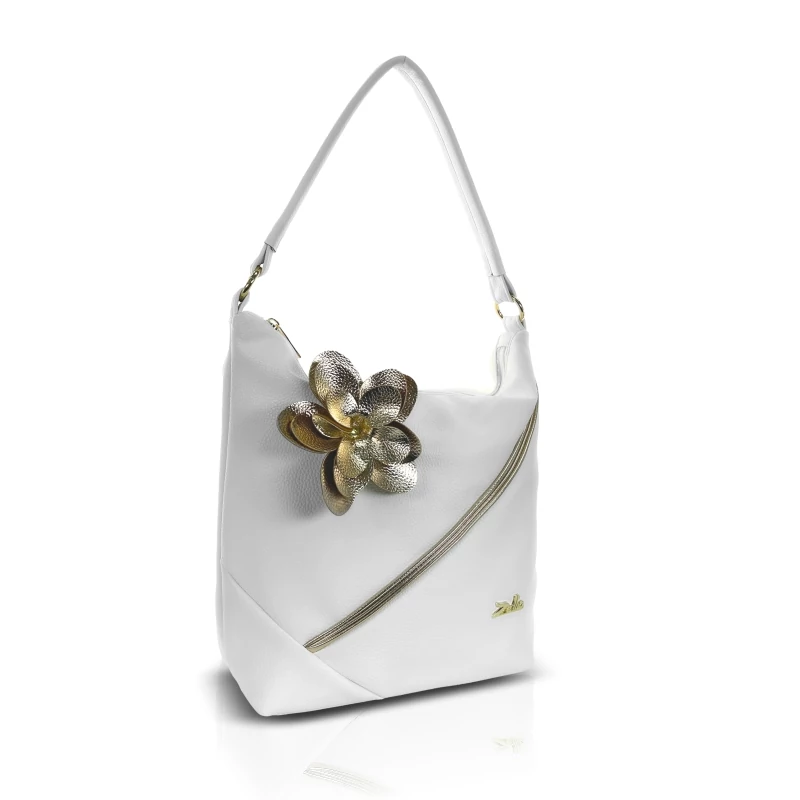 Zellia Női Válltáska Zlb332-F Fehér-Arany – Virág Dísszel –