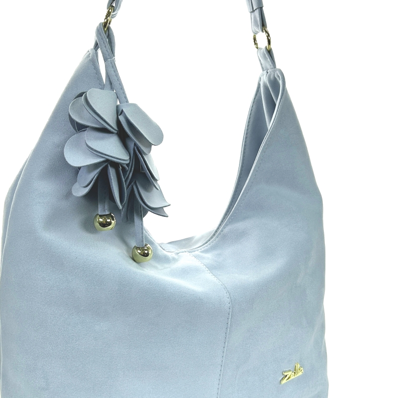 Zellia Női Válltáska Zlb407-F Baba Kék Velúr – Virág Dísszel –