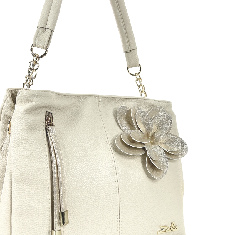 Zellia Női Válltáska Zlb424F Beige-Arany – Virág Dísszel –