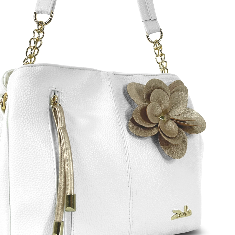 Zellia Női Válltáska Zlb424F Fehér-Arany – Virág Dísszel –
